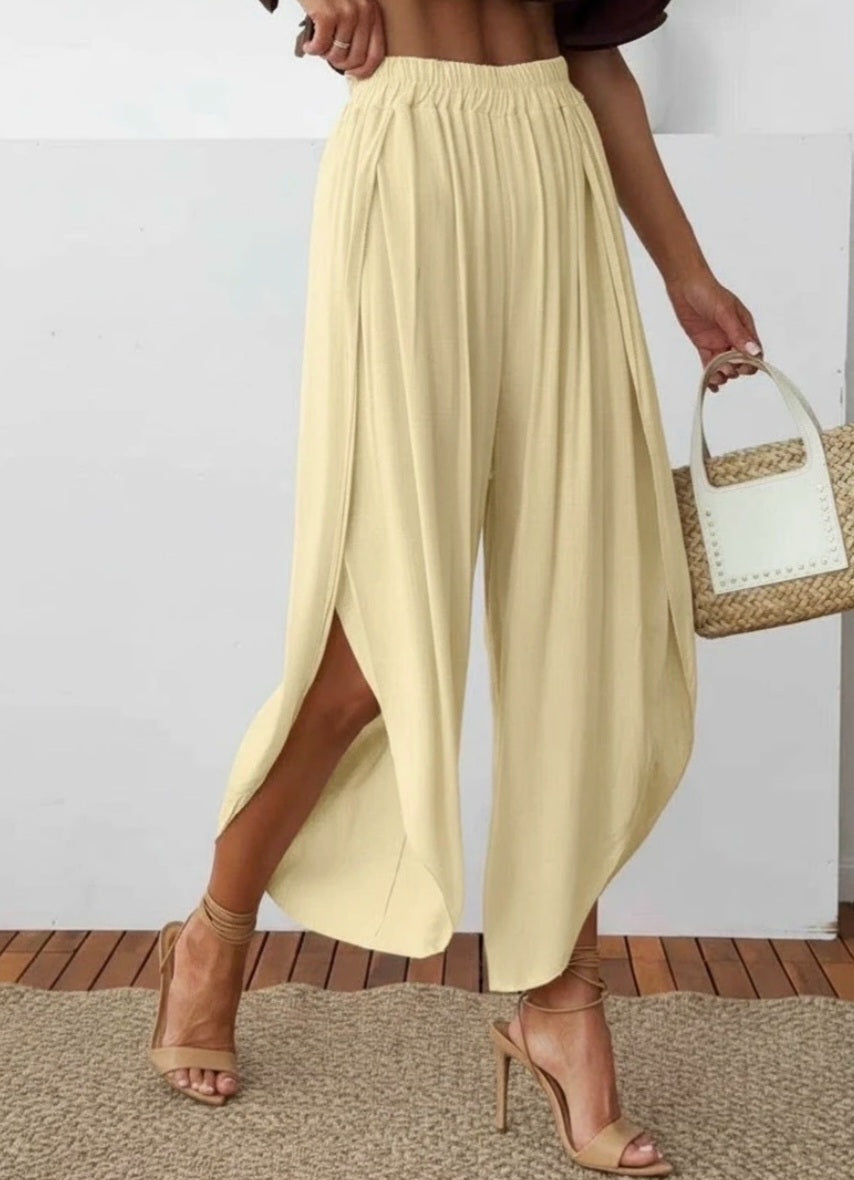 Lyocellbyxor med sidoslitsar och resår i midjan