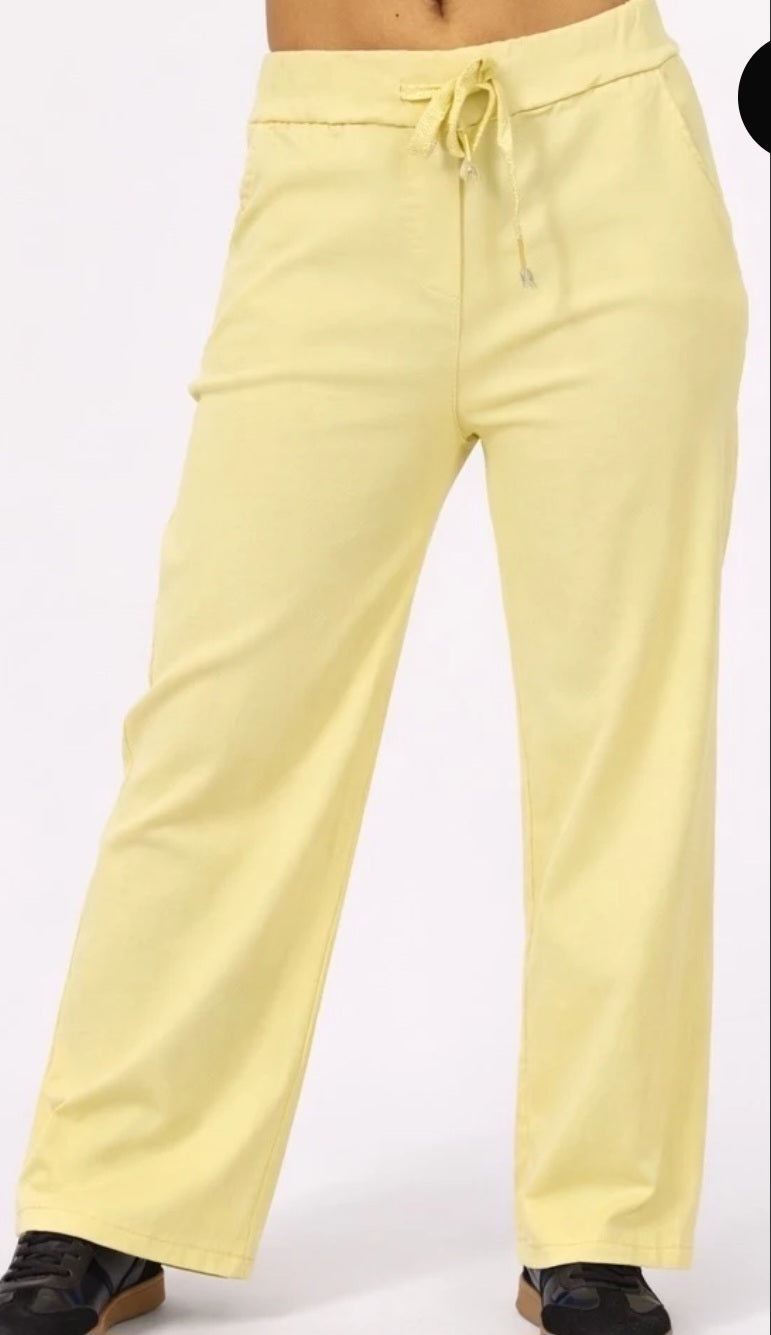 byxor, med ficka på sidorna och dras åt med dragsko i midjan. En av våra bästsäljare, med bara positiv feedback på snittet som avsevärt kan förbättra kroppsformen, det mycket stretchiga tyget, med ett varierat utbud av färger. Beroende på vad du vill kan byxorna jämnas ut genom att strykas. Byxorna kan passa från storlek 36 - 44, den anpassar sig till varje kroppsform.