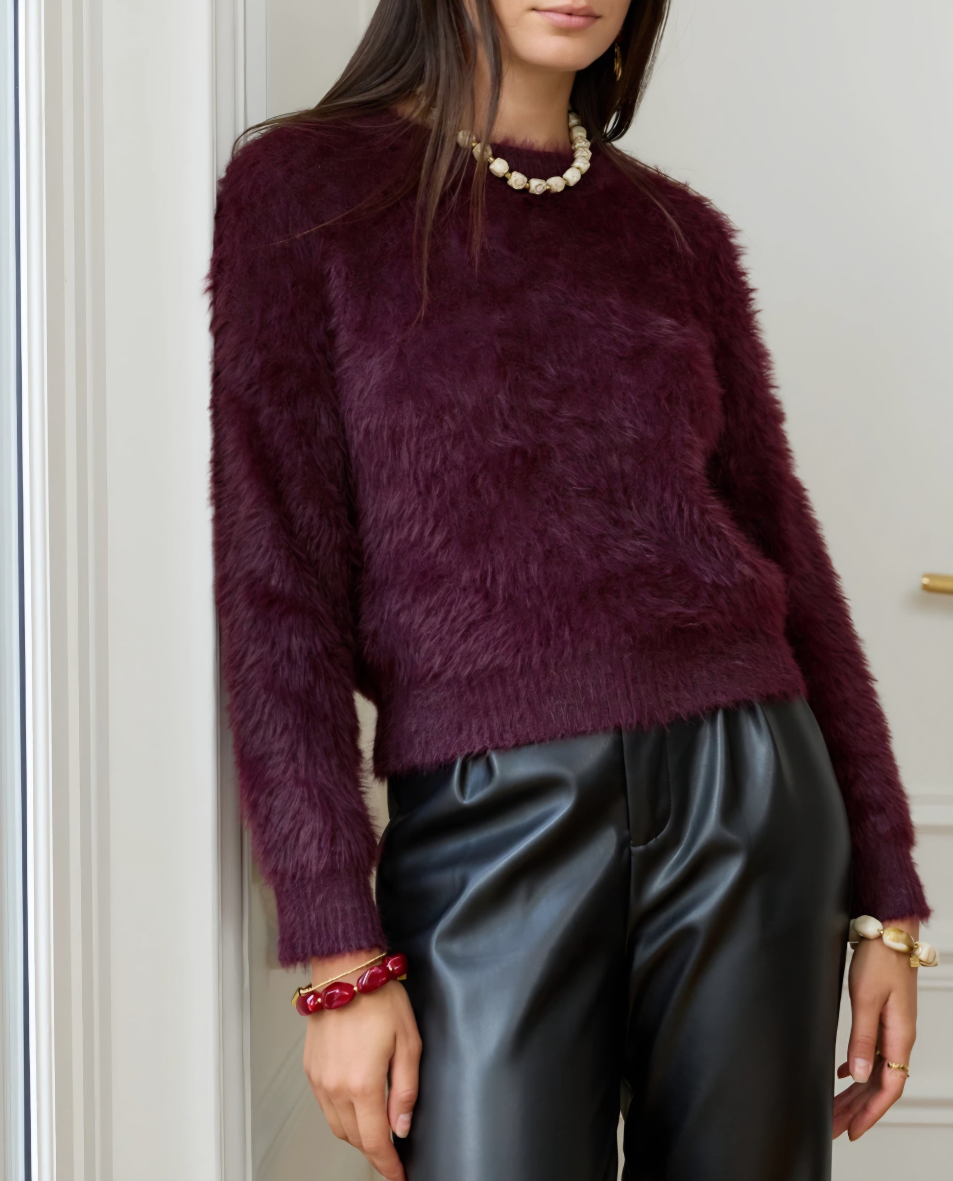 Mysig långärmad tröja Vinröd