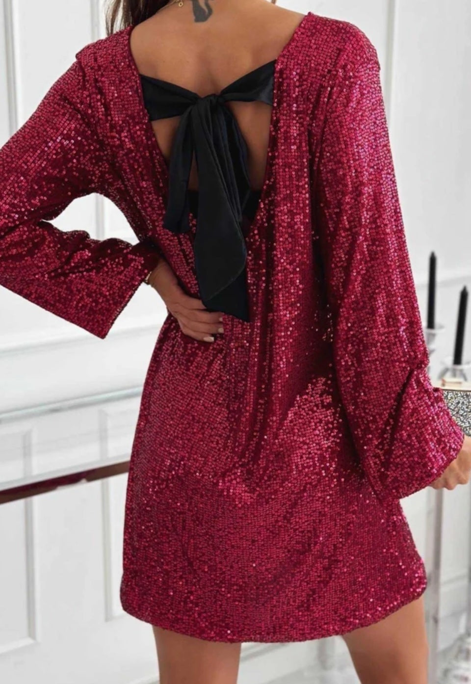 Glansig klänning med rosett baktill, viskosfoder, perfekt för fester