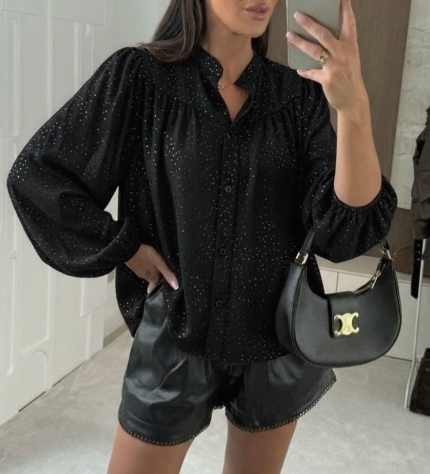 Paljettskjorta med viskosfoder och puffärmar Svart
