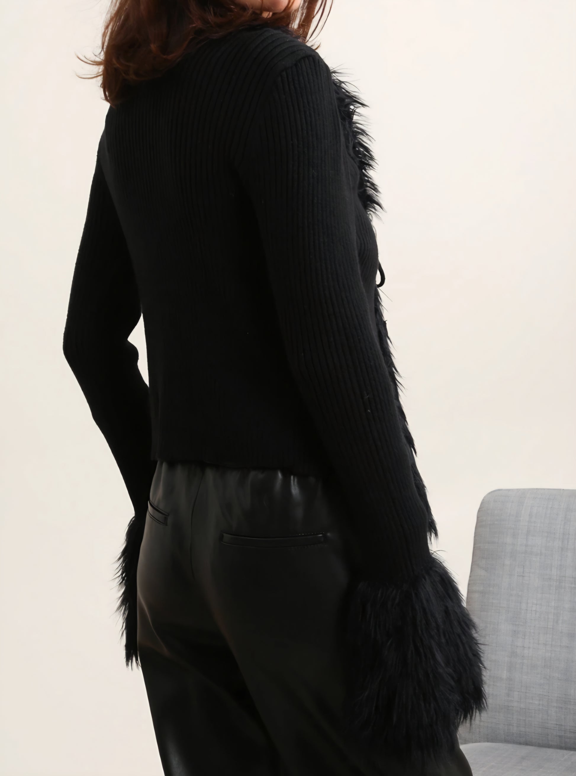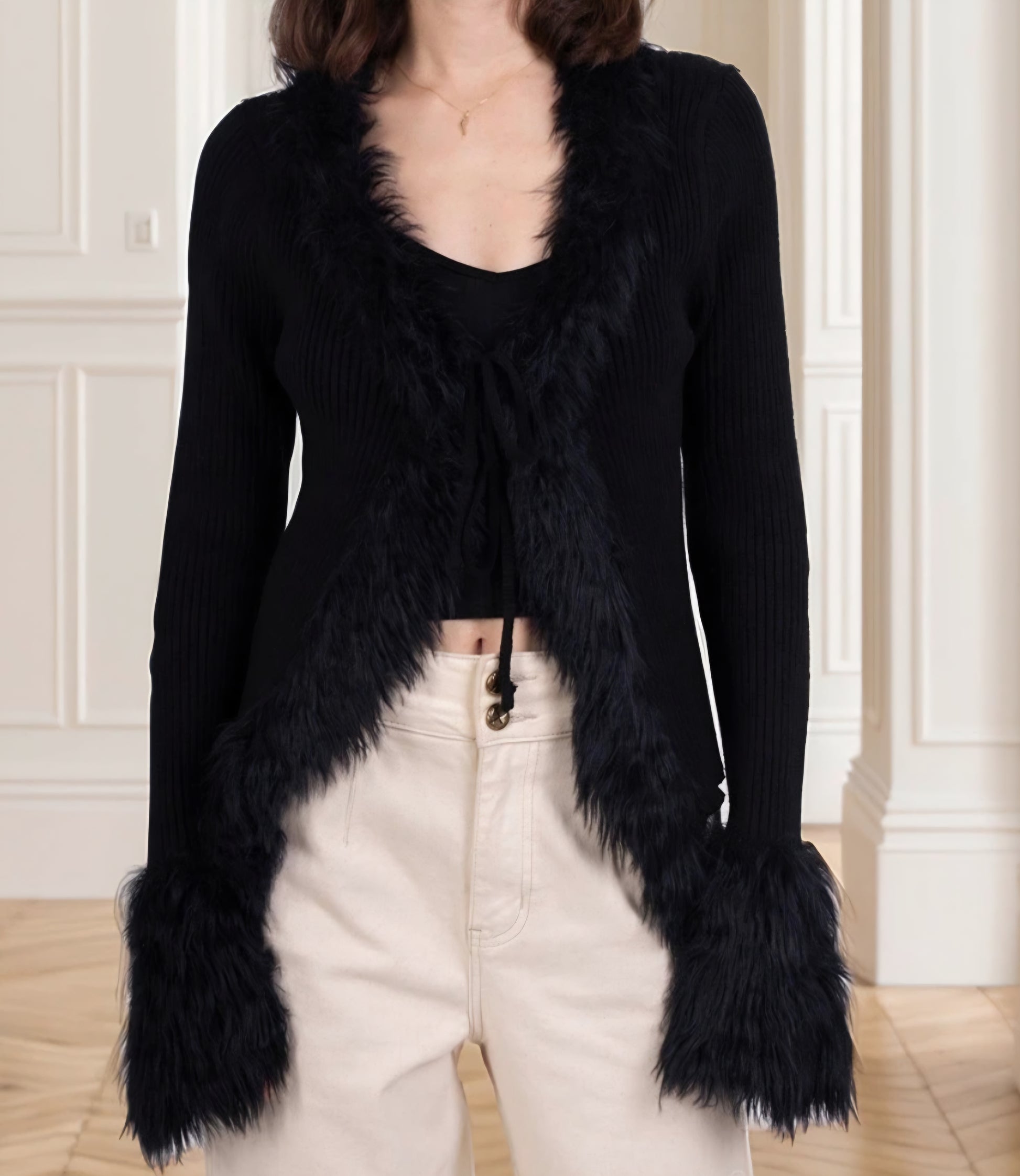 Ribbad kofta Svart fuskpäls