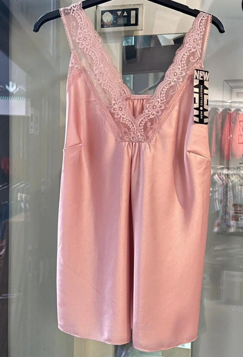 Unna dig en touch av förfining med vår V-ringade satintopp prydd med utsökt spets. Denna topp finns i en fantastisk palett av pastellfärger och klassiska färger (puderrosa, himmelsblå, mjukgul, turkos, beige, elfenben och svart) och förkroppsligar femininitet och elegans.