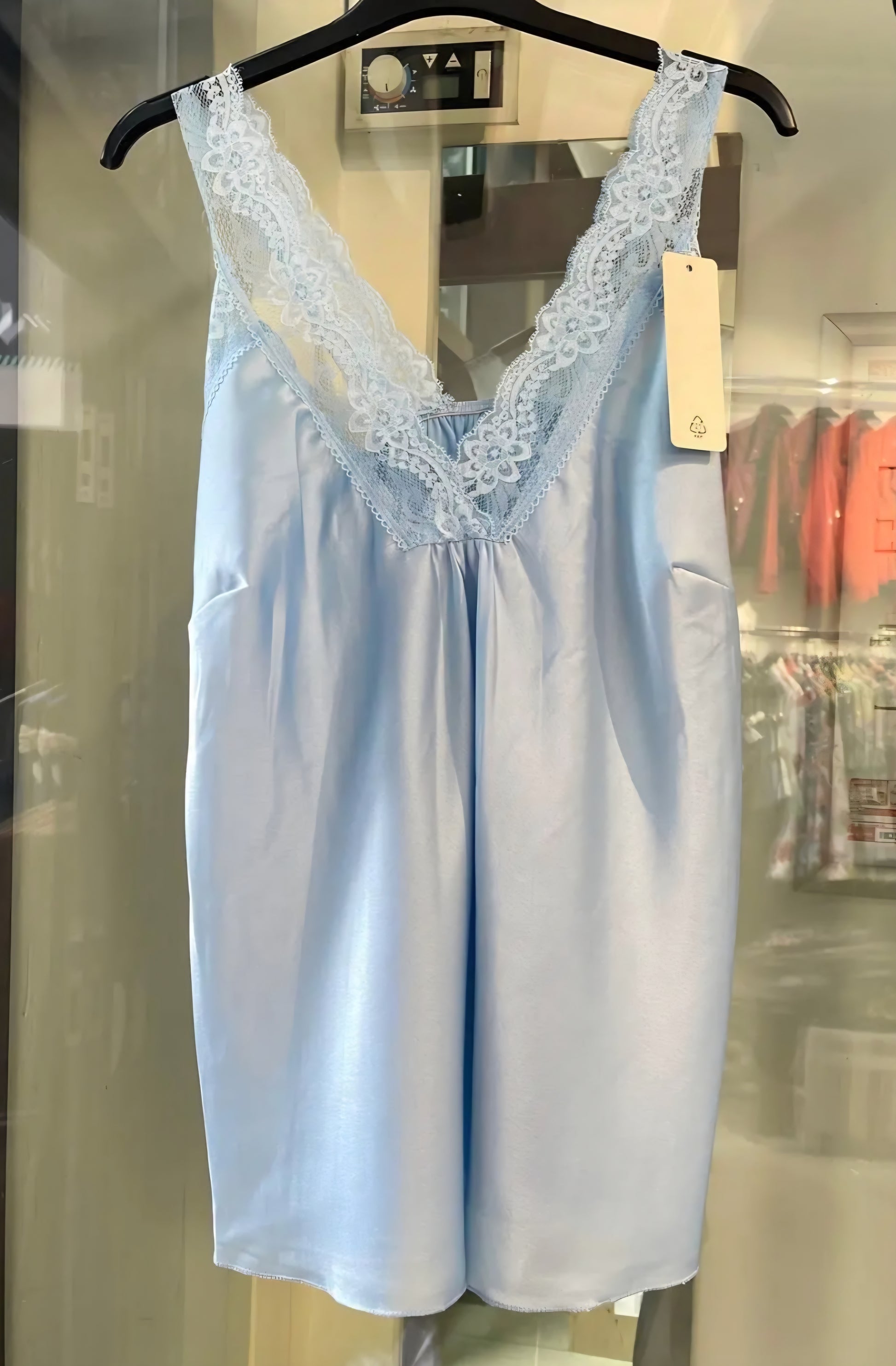 Unna dig en touch av förfining med vår V-ringade satintopp prydd med utsökt spets. Denna topp finns i en fantastisk palett av pastellfärger och klassiska färger (puderrosa, himmelsblå, mjukgul, turkos, beige, elfenben och svart) och förkroppsligar femininitet och elegans.