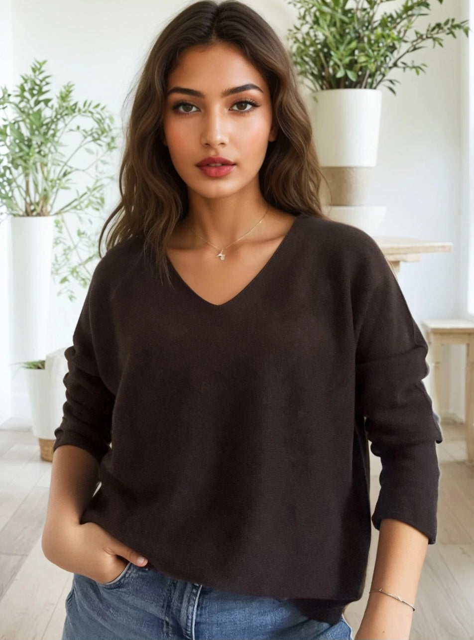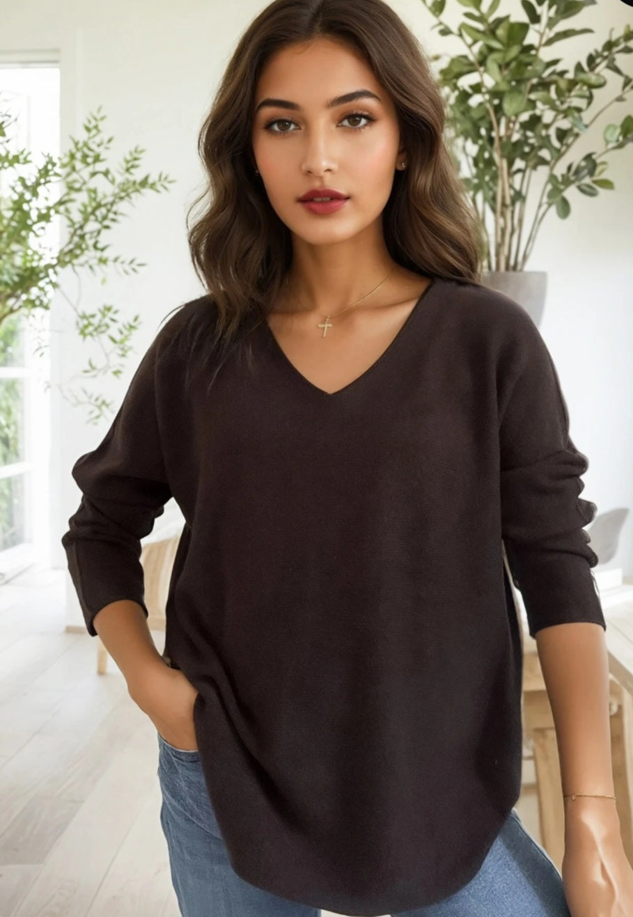 Sömlös stickad tröja av mycket bra kvalitet. Materialet är väldigt likt ull och kashmir.