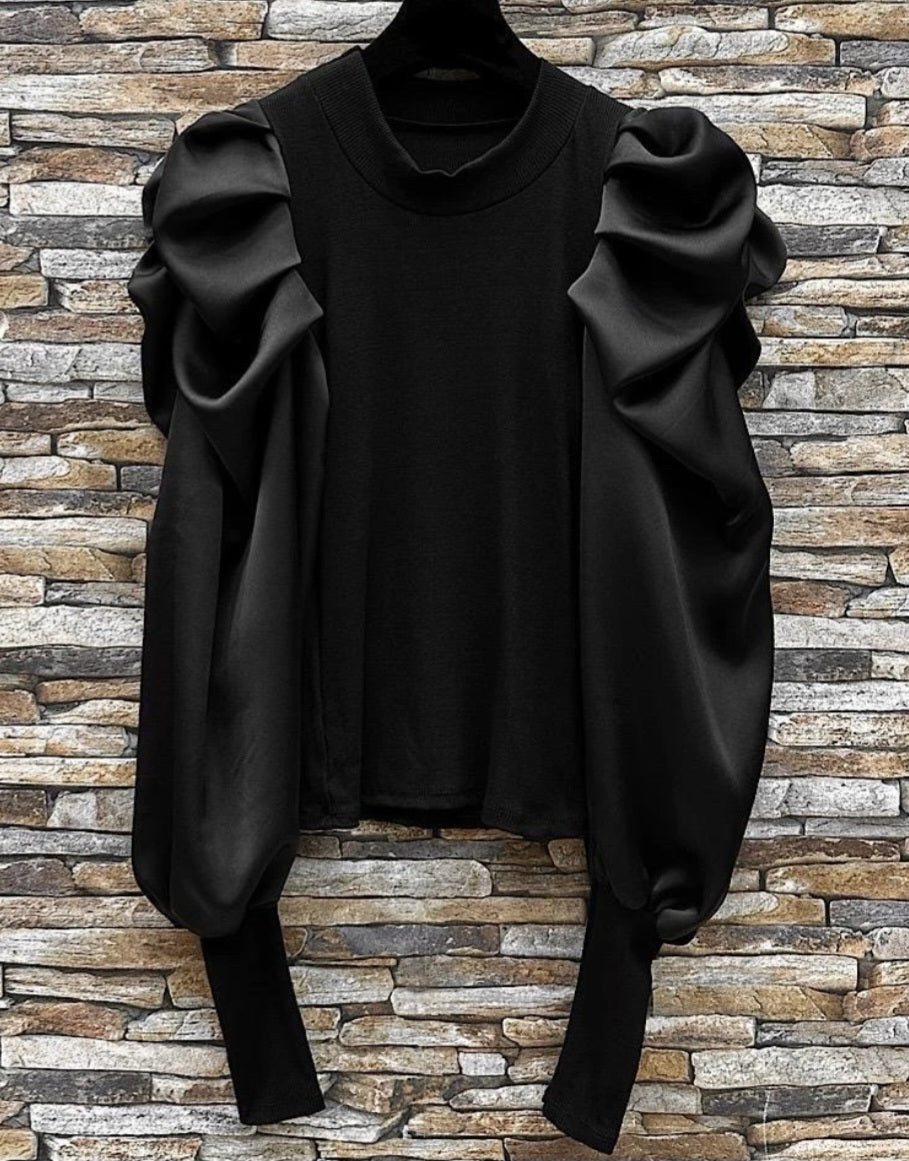 Topp med satin armar Svart