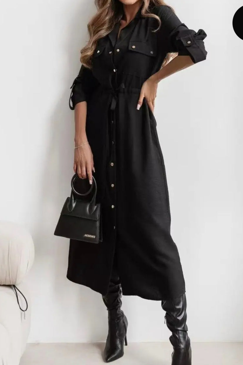 Lång skjortklänning. Klänningen finns i 3 storlekar: S, M, L.
