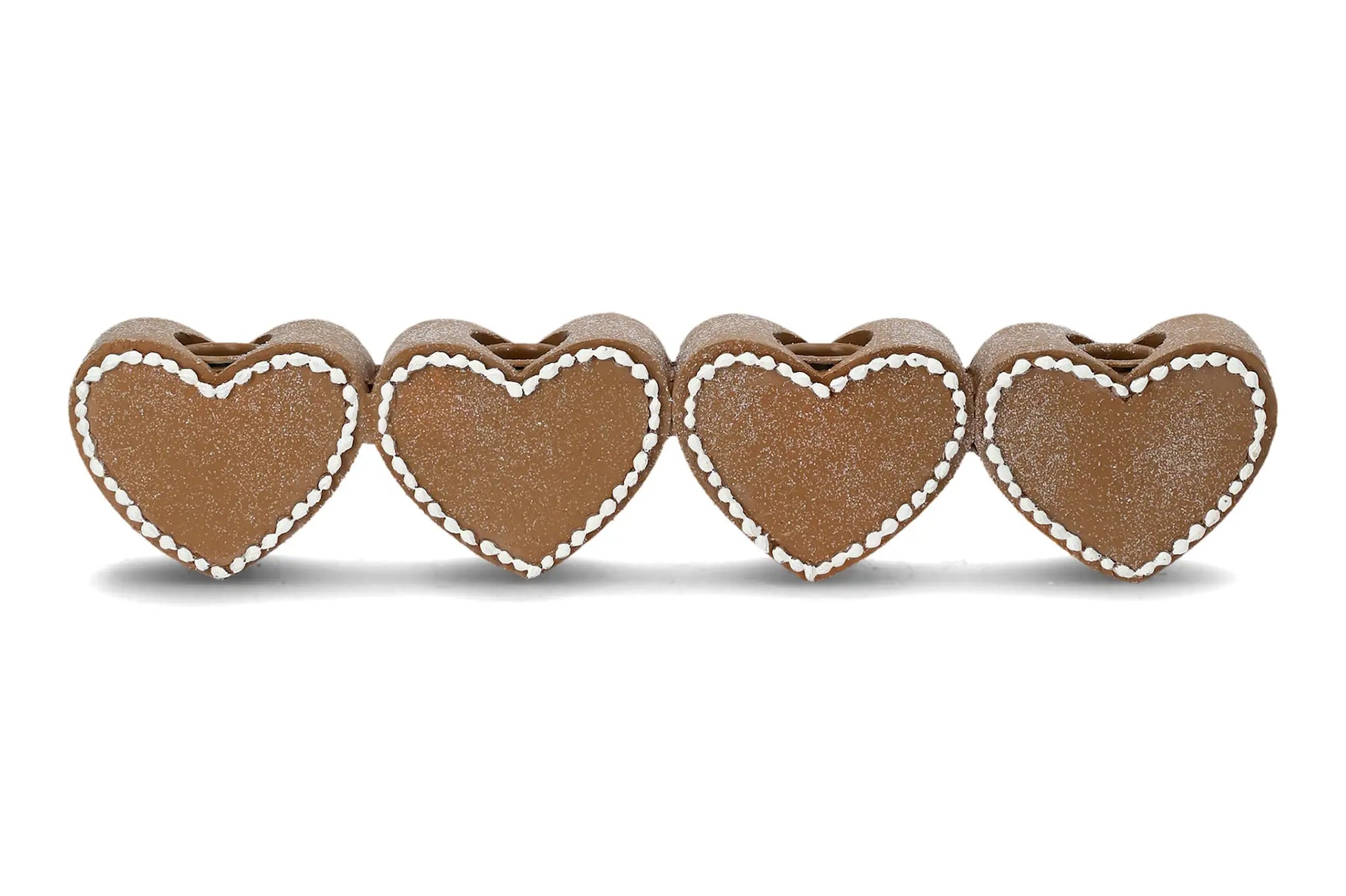 Ljusstake med pepparkakshjärtan och plats för fyra ljus. Perfekt som roligt julpynt och som adventsljusstake. Tillverkad i poly.