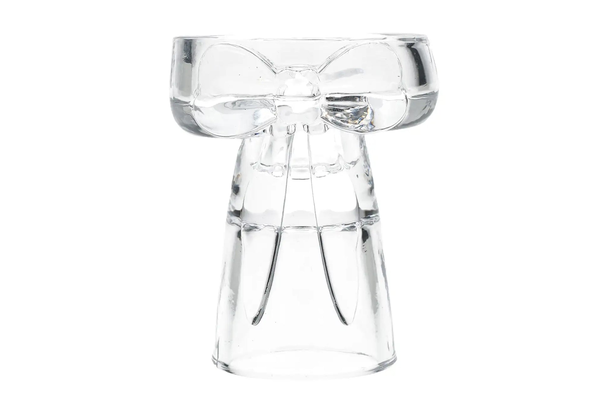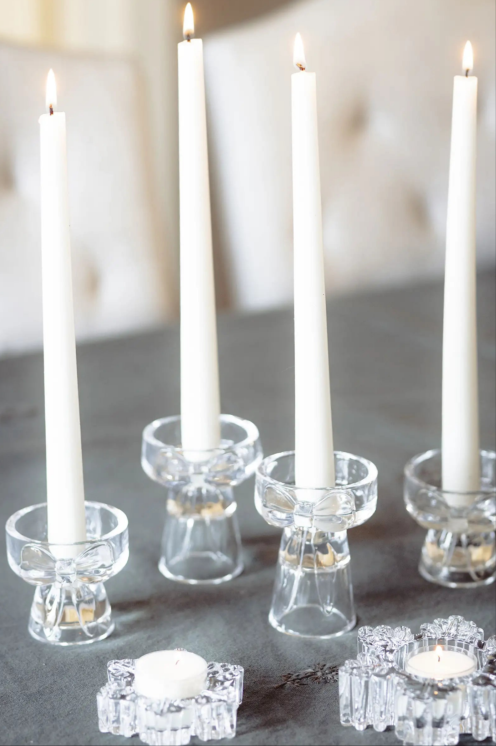 Lys upp rummet med levande ljus med denna ljusstake med rosett. Passar både kronljus och värmeljus. Tillverkad i glas. Finns i flera storlekar.