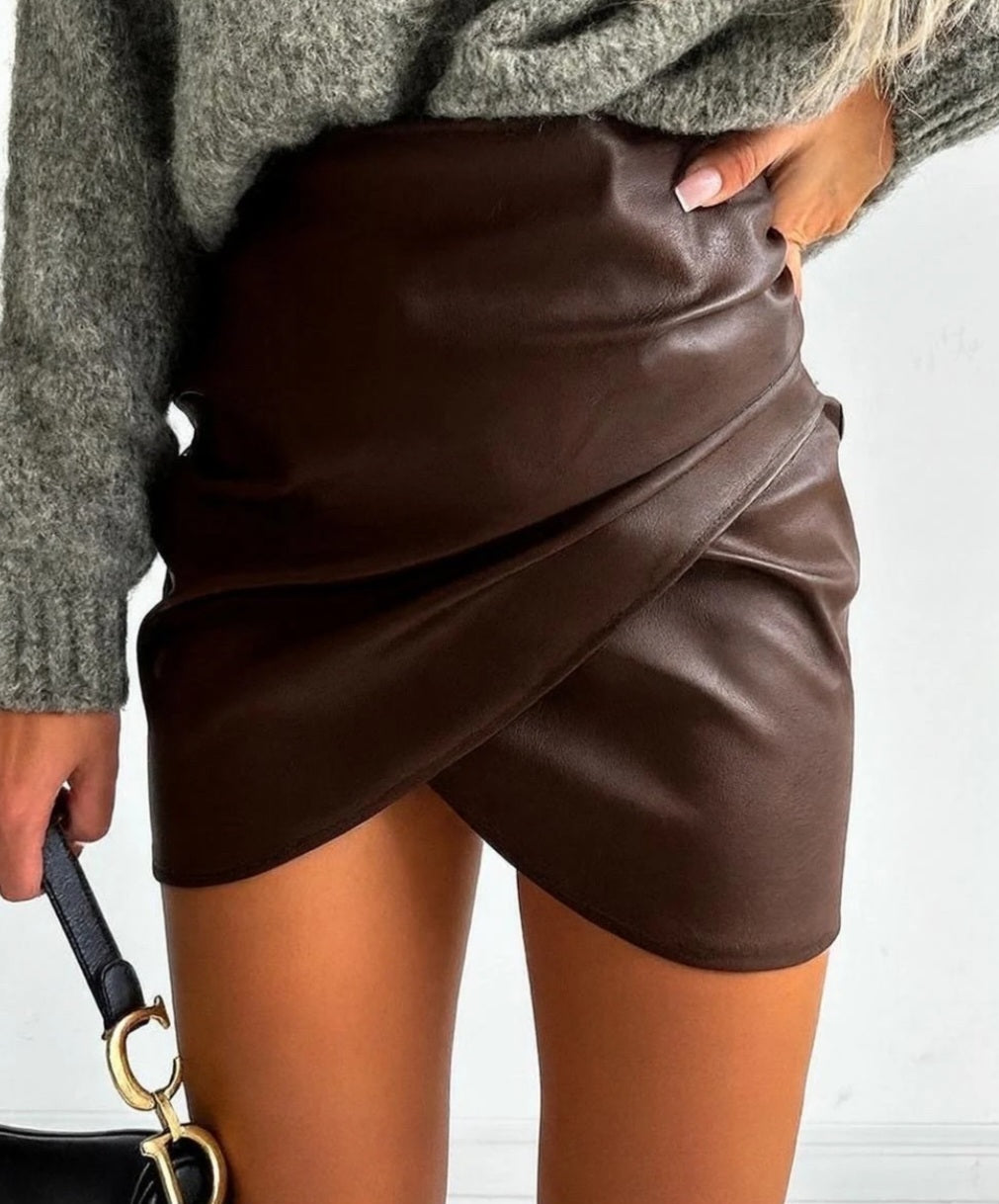 Omlottkjol i konstläder Brun