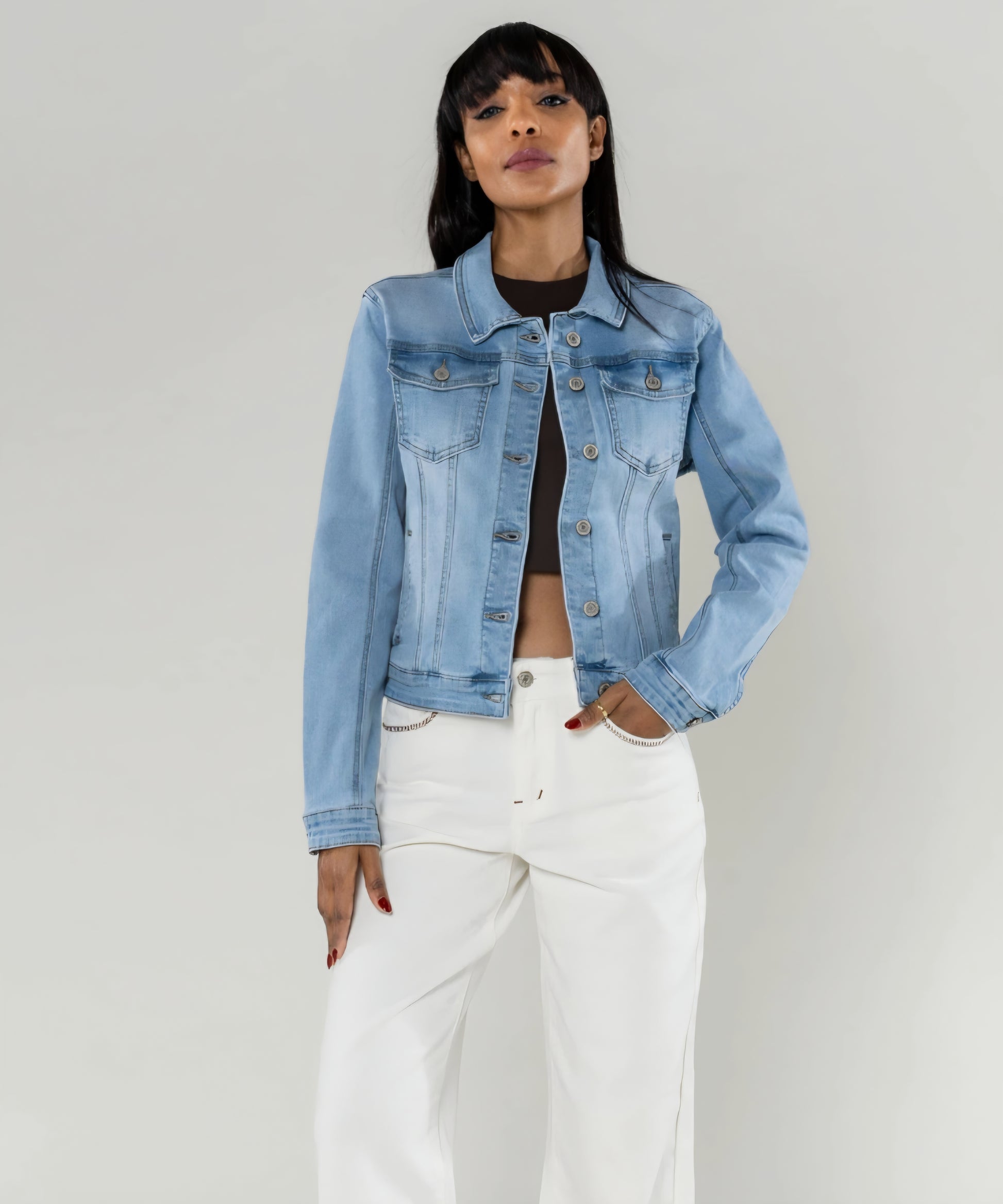 Rak Stretchig Jeansjacka Ljus
