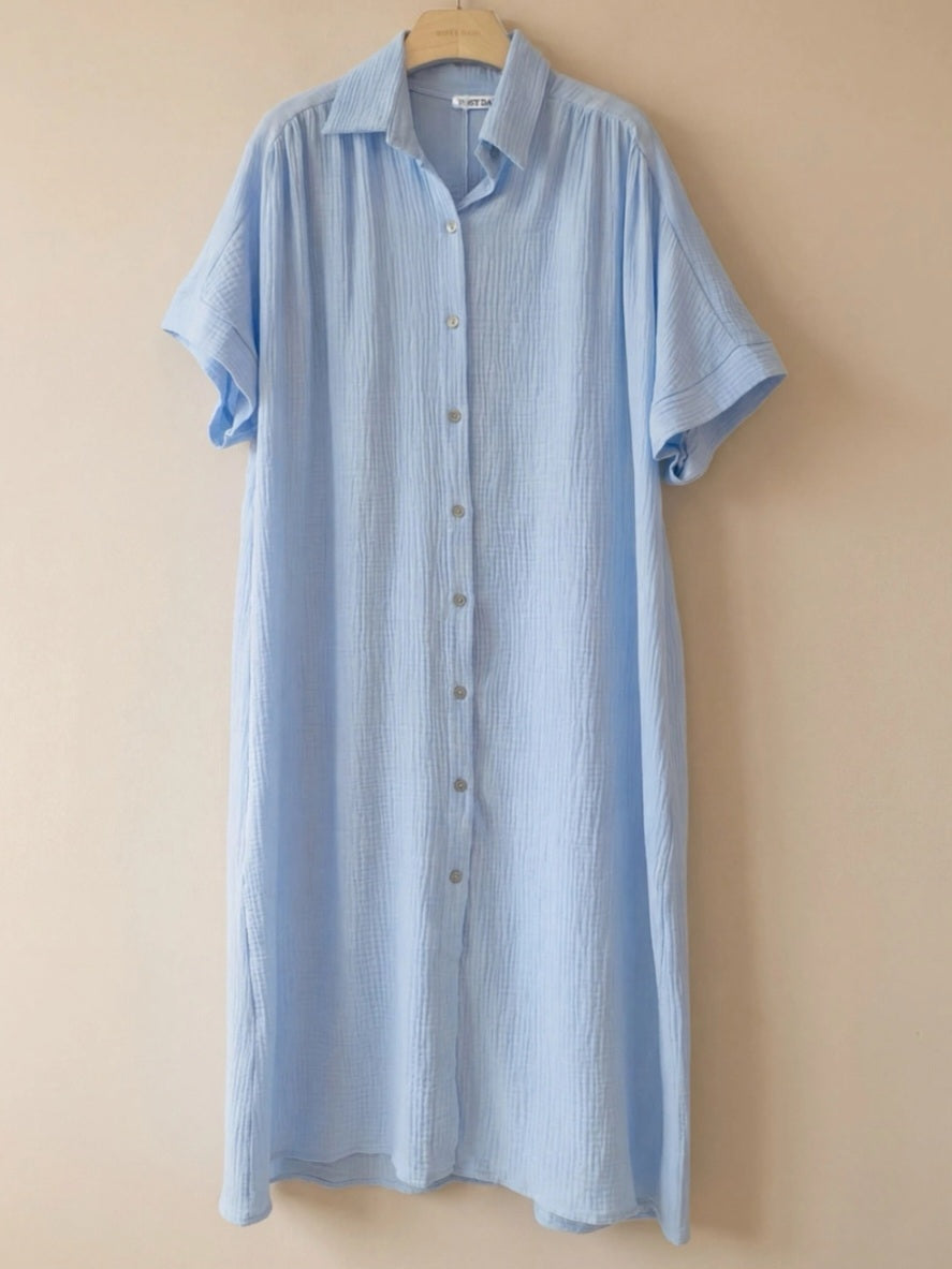 Löst lös skjortklänning i bomullsgasväv, lätt för en sval, 100 % bomull.