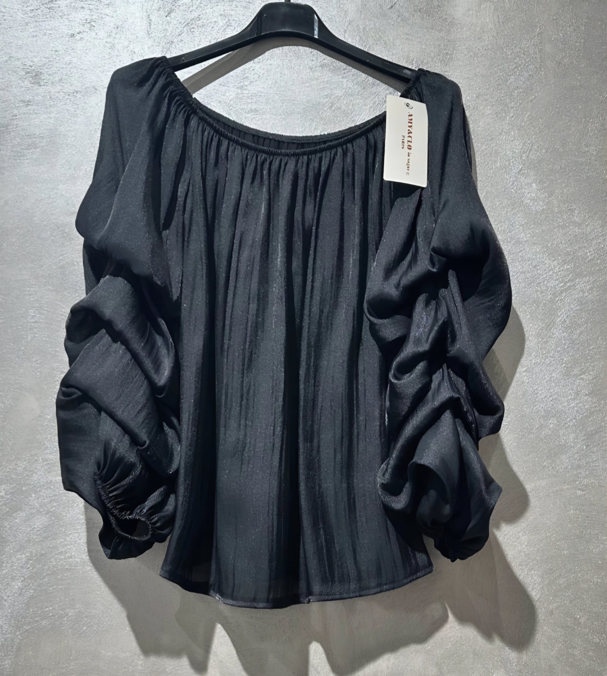 Snygg enfärgad topp med puffärmar Svart