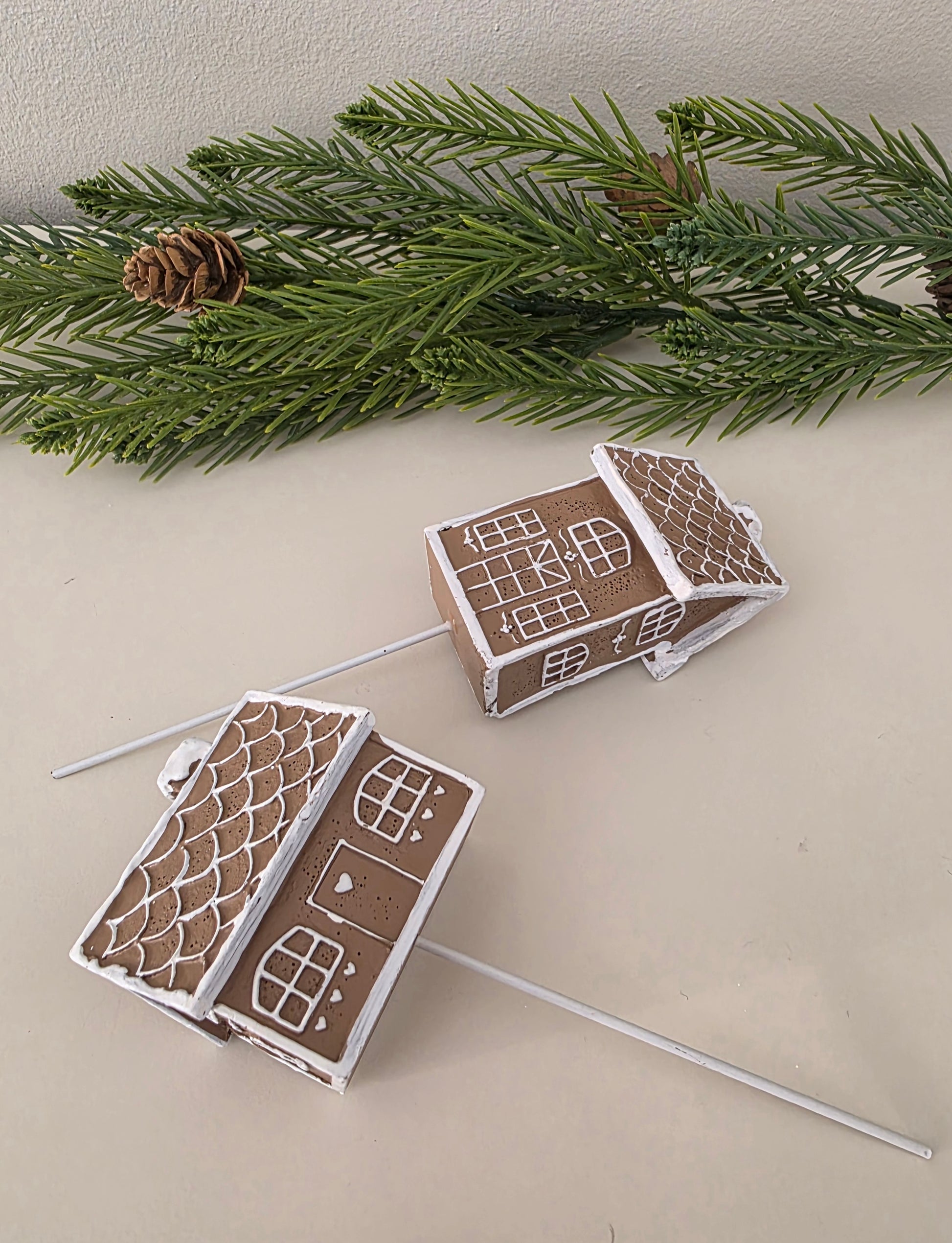 Ge krukväxterna lite julkänsla med dessa fina pepparkakshus på pinne. Tillverkade i poly.