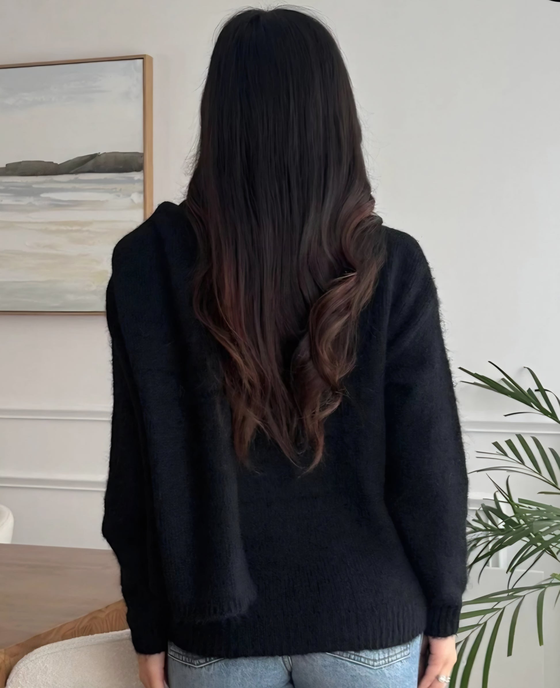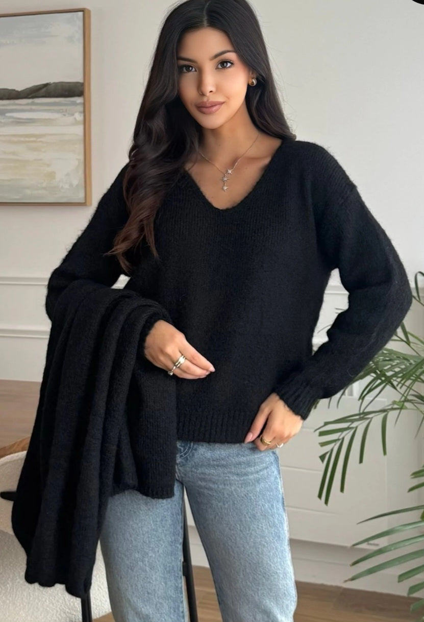 V-ringad tröja Svart med matchande halsduk