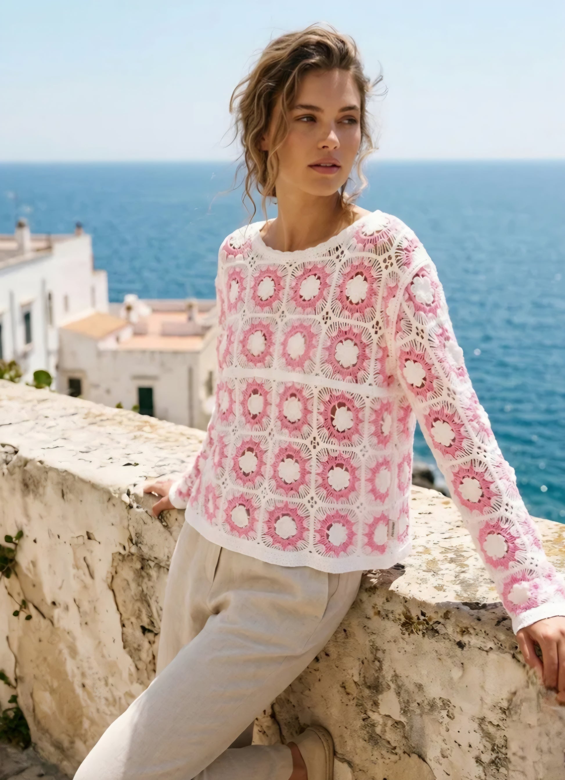 Virkad tröja i 100 % bomull, perfekt för svala vår- och sommarkvällar